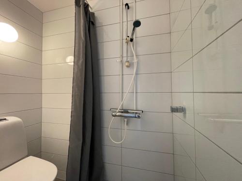 A living room with a smart TV and a bathroom with shower are standard in Mikkelparken Ferientun’s accommodation options. Kitchen facilities include a dishwasher and microwave.