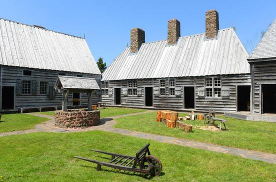 Rekonstruktion von Champlains Palisadenfort von 1605 mit Vorführungen des damaligen Lebens und der traditionellen Handwerkstechniken.