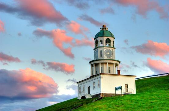Die 1828–56 erbaute Festung in beherrschender Lage über der Innenstadt ist heute Militärmuseum, die Town Clock mit ihren vier Zifferblättern das Wahrzeichen von Halifax.