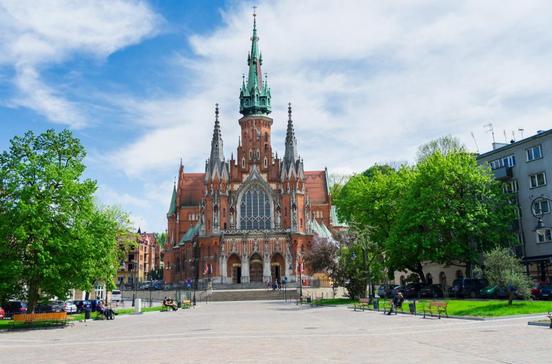 Die Pfarrkirche von Kazimierz am ehemaligen Marktplatz ist eine der schönsten gotischen Kirchen der Stadt. Eine Legende erzählt, dass über dem Bauplatz, einem früheren Sumpf, wochenlang ein merkwürdiges Licht zu sehen war. Als Arbeiter dort zu graben begannen, fanden sie eine Monstranz, die aus einer Krakauer Kirche verschwunden war. Die monumentale mittelalterliche Kirche von 1340 wurde im 18.Jh. barockisiert. Besonders sehenswert sind der Hauptaltar und die Kanzel in Form eines Boots.
