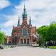 Die größte Kirche des Viertels wurde von 1905 bis 1909 gebaut. Besonders charakteristisch für das neogotische Gotteshaus ist die Verbindung des roten Back- mit dem hellen lokalen Sand- und Kalkstein.