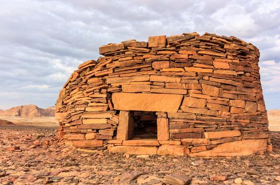 Es sind rätselhafte kleine Häuser, 5000 Jahre alt, aus mörtellos zusammengefügten Steinen, die ihren Namen von den Beduinen erhalten haben. Alle ihre Eingänge sind nach Westen hin ausgerichtet. Wahrscheinlich wurden die 2 m hohen prähistorischen Bauten einst als Gräber errichtet. Die Sandpiste zu ihnen zweigt Richtung Süden von der Straße Nuweiba-Katharinenkloster wenige Kilometer westlich der Cafeteria bei der Oase ‘Ain Khudra ab.