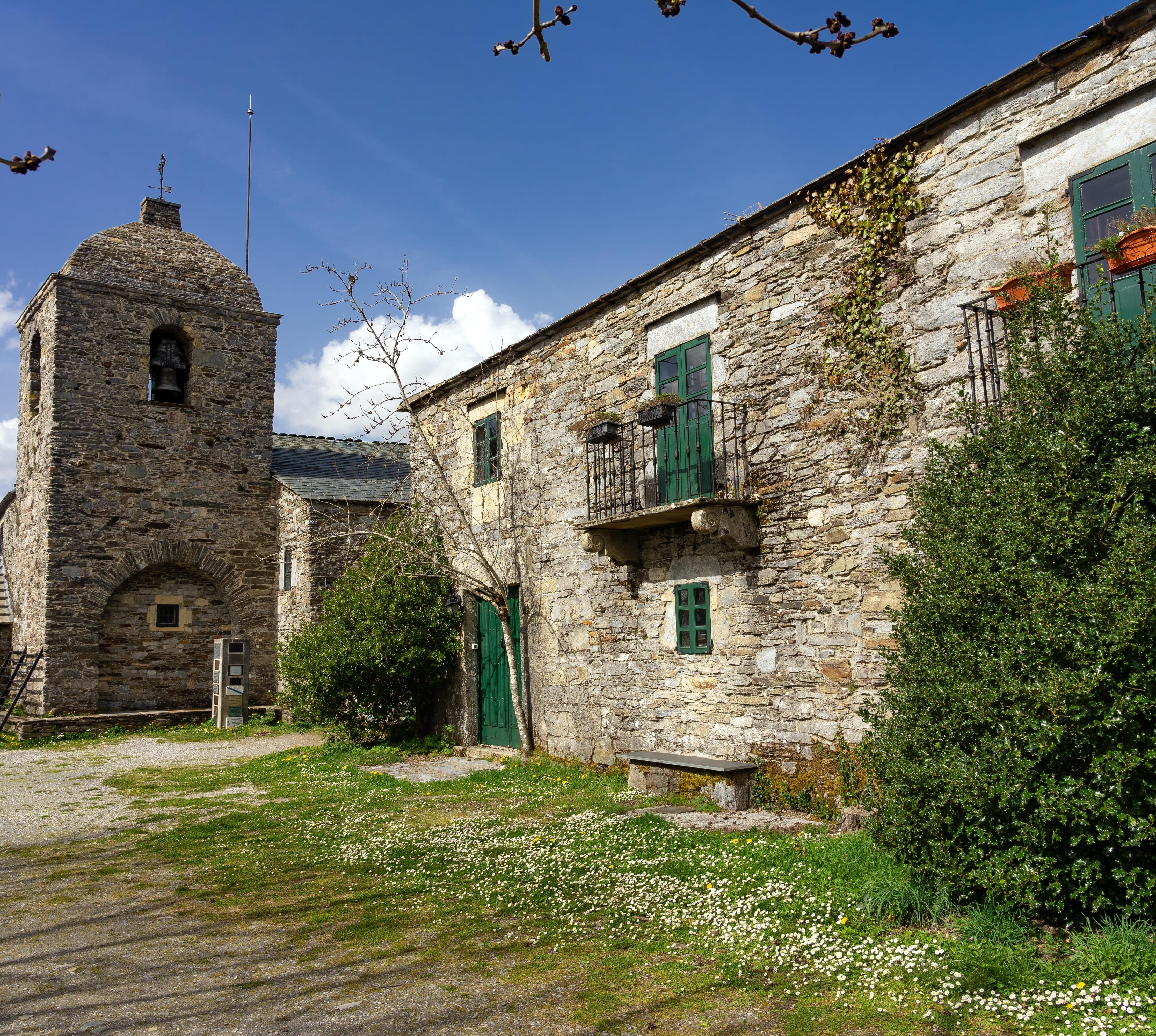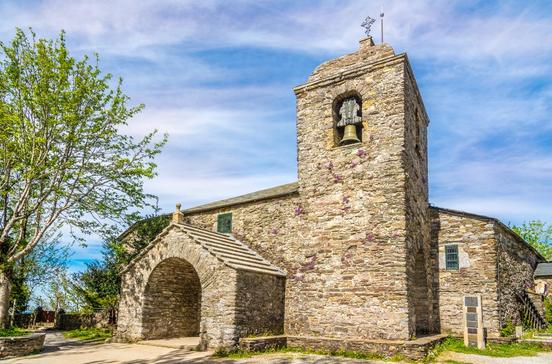 In der unwirtlichen Bergwelt am 1300 m hohen Pass von Cebreiro fanden die Pilger in dem kleinen Dorf Unterschlupf in den elliptischen "pallozas". Die Bauweise der Steinhäuser mit tiefgezogenen Strohdächern ist keltischen Ursprungs. Die Kirche aus dem 9.Jh. ist eine der ältesten am Jakobsweg.