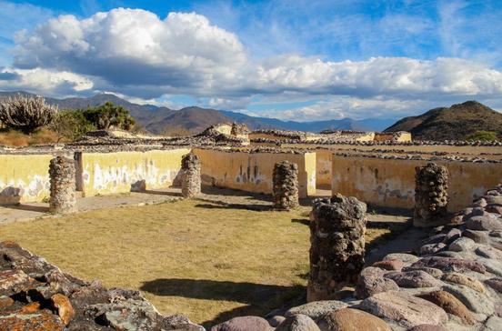 Der Ausflug nach Mitla lässt sich gut mit einem Besuch der 15 km entfernten archäologischen Stätte Yagul verbinden, der alten Kultstätte der Zapoteken und Mixteken. Ausgrabungsfunde sprechen dafür, dass es hier bereits um 600 v. Chr. eine Siedlung gab. Die erhaltenen Bauwerke stammen aber aus einer wesentlich späteren Epoche (900–1200 n. Chr.), aus der Übergangsphase von der zapotekischen zur mixtekischen Macht. Die kleinere Anlage wird von La Fortaleza beherrscht, einer weithin sichtbaren Hügelfestung. Südlich davon gruppieren sich die Paläste und Wohnviertel der einstigen Bewohner. Zwischen Kakteen und Agaven erstrecken sich die Bauwerke über zahllose Treppen. Beeindruckend ist der Grundriss des Palacio de los Seis Patios (Palast der sechs Innenhöfe), einer rechteckigen, 60 x 80 m umfassenden Anlage, die von der Kunst der alten Baumeister zeugt.