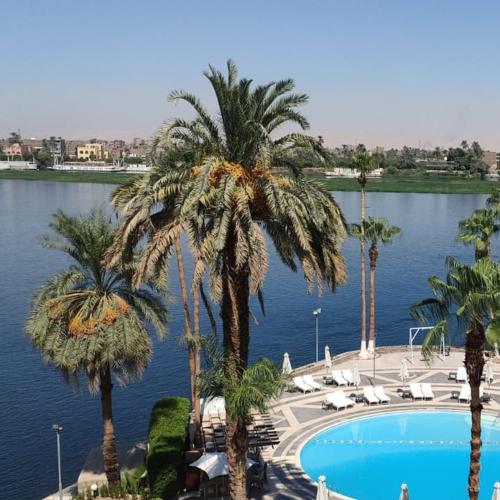 Hier erwarten Sie eine Vielzahl von Zimmern mit 24-Stunden-Zimmerservice sowie einer Terrasse mit Blick auf den Pool und den Nil.