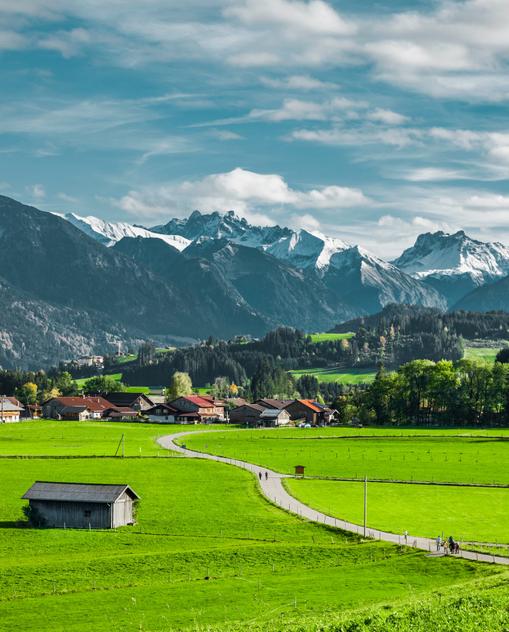 Du willst die Alpen erleben, sie möglichst dicht vor Fenster und Balkon deines Urlaubsdomizils sehen und dann nichts wie los in die Berge zum Wandern, Klettern, Radeln? Dann ist das südliche Oberallgäu die richtige Region für dich. Schon Mitte des 19.Jhs. kamen die ersten Sommerfrischler aus denselben Gründen hierher. Entsprechend gut ist die touristische Infrastruktur: Es gibt zahllose Übernachtungsangebote von der einfachen Berghütte bis zum luxuriösen Wellnesshotel, eine ebenso große Vielfalt an Einkehrmöglichkeiten, dazu moderne Bergbahnen und gut gepflegte Wanderwege und Klettersteige. Im Norden der Region hat die Stadt Kempten mehrere interessante Museen zu bieten.