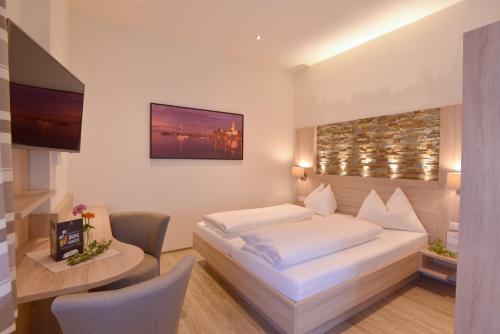 Die schallisolierten Zimmer im familiengeführten Hotel Schöngarten Garni sind modern eingerichtet. Jedes Zimmer ist mit Kabel-TV und einem modern gestalteten Bad ausgestattet.