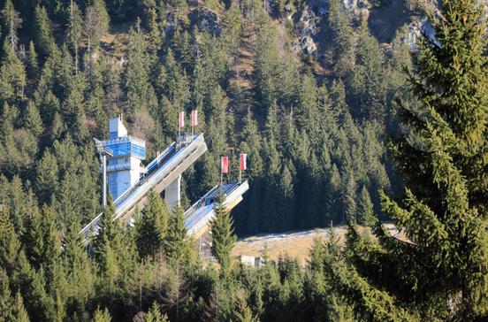Die legendäre Skiflugschanze liegt im Stillachtal in der Nähe des Freibergsees. Sie ist eine der größten Skiflugschanzen weltweit, wurde bereits 1949 erbaut und seitdem mehrfach modernisiert. Direkt auf der Schanze wird ein Virtual-Reality-Skiflug angeboten – Herzklopfen und feuchte Hände inklusive.