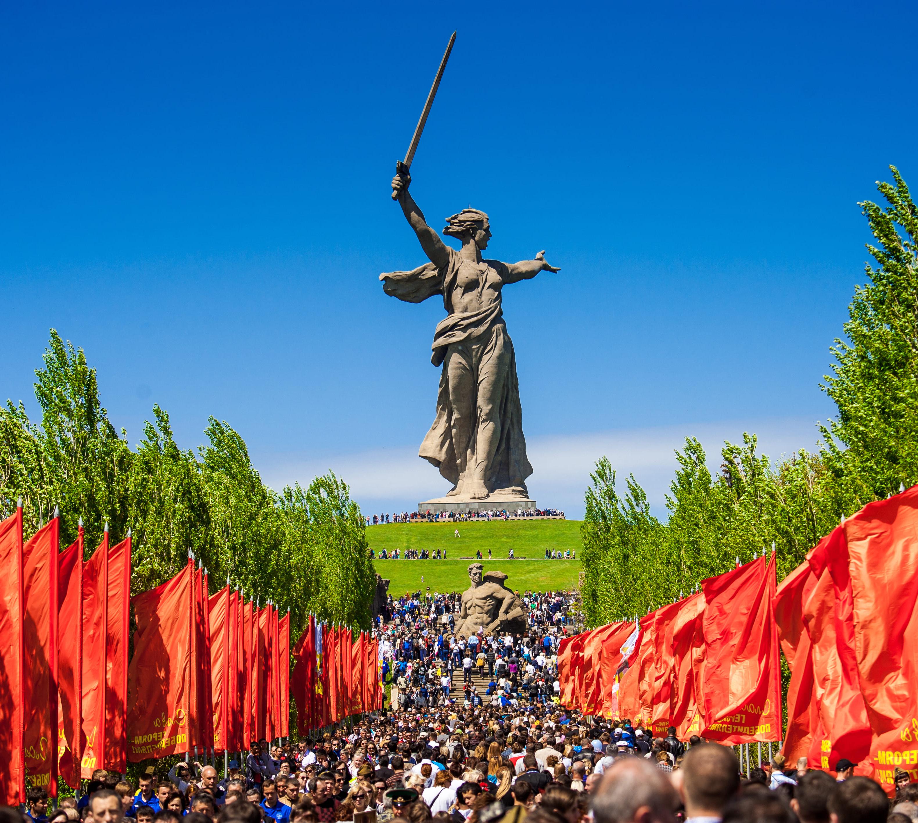 Die Monumentalstatue auf dem Mamajew-Hügel wurde zum Gedenken an den Sieg der sowjetischen Streitkräfte im "Großen Vaterländischen Krieg" errichtet. Realisiert wurde sie durch den bekannten Architekten Nikolai Nikitin. Beachtlich sind die Dimensionen des Kolossalstatue: die Beton-Stahl-Konstruktion ist 85 Meter hoch. Ihr Gewicht beträgt - ohne Sockel - stattliche 7900 Tonnen.