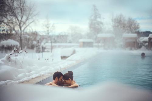 Zum Wellnessbereich gehören ein beheizter Außenpool mit einer Liegewiese, einen beheizten Innenpool, 9 Saunen, einen Whirlpool, ein Dampfbad, eine Infrarotkabine, Aromaduschen, eine Tee- und Saftbar sowie Ruheräume mit Wasserbetten und Panoramablick auf die Berge. Im Spa erwartet Sie außerdem das Water Spray Land mit vielen Wasserattraktionen. Auch ein separates Familien-Spa mit Wasserattraktionen für Kinder und Jugendliche ist vorhanden.