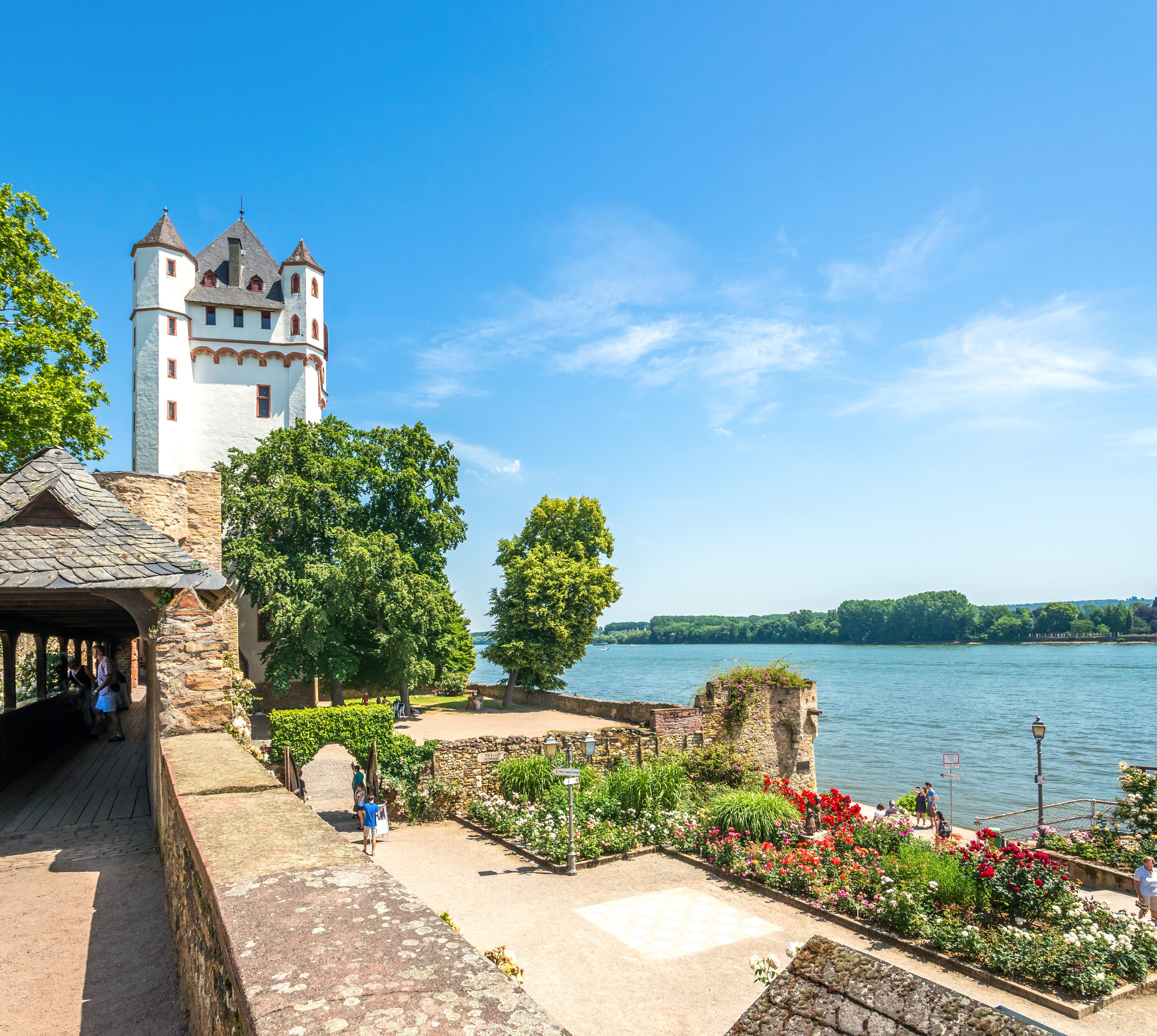 In Walluf und Eltville lässt es sich wunderbar am Strom flanieren, denn hier verläuft die Bundesstraße nicht unmittelbar am Rhein. So konnten sich gepflegte Promenaden am Rheinufer ausbilden.
