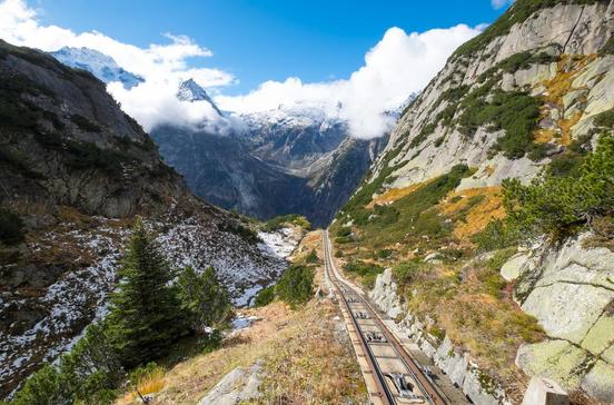 Die steilste Standseilbahn der Welt führt hinauf in die prächtige Gebirgswelt rund um den Gelmersee. Von der Talstation der Standseilbahn führt eine Hängeseilbrücke 70 m über dem Boden zum Hotel Handeck am Wasserfall.