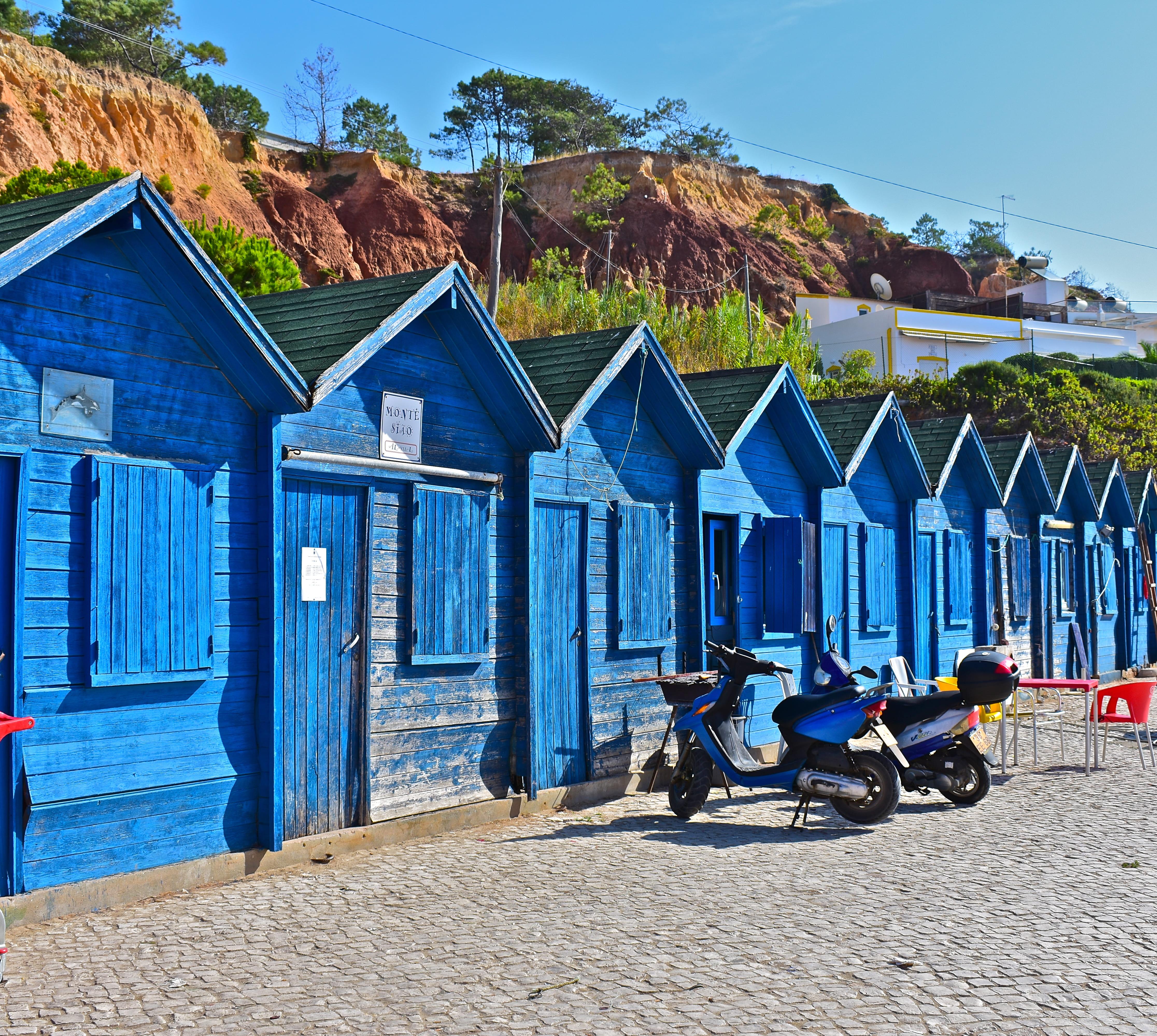 5km östlich, vor rostroten Felswänden mit Kiefernhainen und Mittagsblumen, erstreckt sich am Übergang zwischen Sand- und Felsalgarve einer der schönsten Strände der Algarve, der zu ausgiebigen Spaziergängen verlockt. 8 km östlich liegt vor einem wunderbaren Strand die 30 m hohe, mehrere Kilometer lange Steilwand, mit der die Felsalgarve ausläuft und in die flache Sandalgarve übergeht. Die Falésia-Wand besteht indes nicht aus Fels, sondern aus verbackenem rotem Sand, der leicht abbröckelt. Leg dich besser nicht direkt unter die Wand! Ansonsten: Auch für Kinder ist das weite Strandgelände mit seinem feinen Sand ein Spielparadies. Zu den einzelnen Abschnitten gibt es jeweils Zufahrten, in ihrer Nähe wird es in der Hochsaison fürs Parken wie fürs Baden eng.