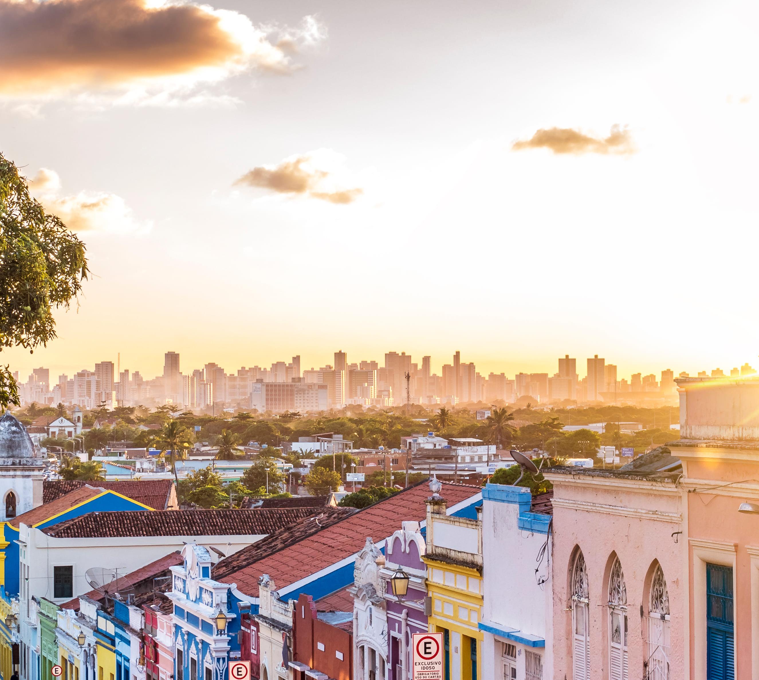 Ihren Namen trägt „Die Schöne“ zu Recht: Malerisch auf Hügeln am Meer verteilt liegen Barockkirchen und hübsche Kolonialhäuser. Von der Unesco wurde Olinda (388 000 Ew.) zum Weltkulturerbe erklärt. Olindas Karneval gehört zu den berühmtesten Brasiliens. Dabei werden riesige Pappmachépuppen durch die Straßen getragen, die meist Prominente darstellen.