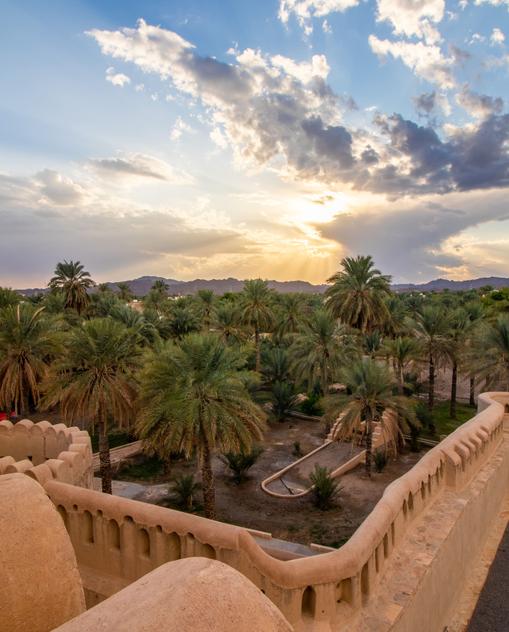 Trotzdem musst – und darfst – du natürlich nicht alle Traumbilder des Orients über Bord werfen. In vielen Dörfern und Städten auf dem Land werden wuselnde Wochenmärkte wie seit Jahrhunderten abgehalten, werden Kamele, Ziegen und Rinder versteigert, und jeden Freitag trifft man sich zum Mittagsgebet in der Moschee. Oft finden sich neben neuen Ortsteilen noch die alten, verlassenen Viertel mit den erhabenen Lehmbauten samt verwitterten Holztüren und geschnitzten Fensterrahmen. Traumbilder wie aus – pardon, aber manchmal passen die Klischees eben einfach perfekt! – „Tausendundeiner Nacht“ erlebst du auch in der spektakulären Natur des Landes, deren Lockruf du dich nicht entziehen kannst. Mindestens eins der grünen Täler (wadis) des Hajargebirges mit ihren kühlen Schatten unter eng stehenden Felswänden und dem Plätschern von Bewässerungskanälen solltest du hinaufgewandert sein. Ebenso wie in die raue, karge Gipfelwelt des Hajar, jener Bergkette, die Omans Nordostküste auf ganzer Länge begleitet (und die du auch mit einem Geländewagen erkunden kannst).