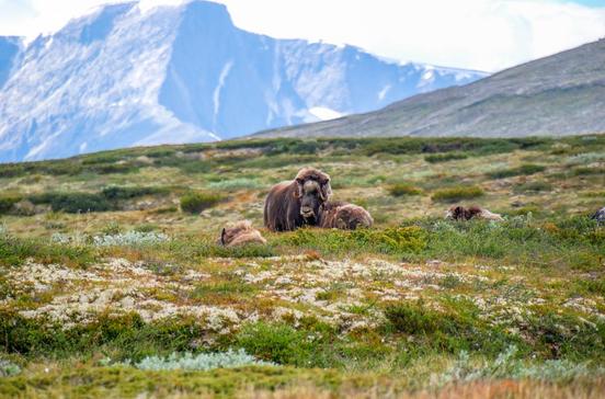 Die Gebirgsregion Dovrefjell mit dem gleichnamigen Nationalpark ist das Tor nach Trøndelag. Das Bergmassiv beherbergt rund 2500 wild lebende Rentiere und 130 Moschusochsen. Botaniker lockt der erstaunliche Pflanzenreichtum hierher. Geologen lassen sich von den Moränen, Oser (Wallbergen) und anderen Aufschüttungen faszinieren, die sich während der letzten Eiszeit überall in diesem Gebiet gebildet haben.