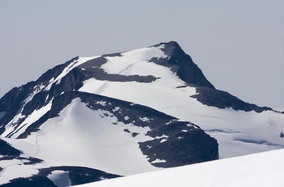 Der 2286 m hohe Gipfel Snøhetta ist mit einer weißen Kappe bedeckt.