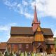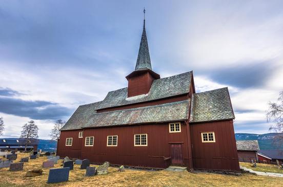Eine erste schriftliche Erwähnung erfuhr die Stabkirche Anfang des 14.Jhs. Während ihr Äußeres und der Kirchturm Ergänzungen des 19.Jhs. sind, zeigt sich im Mittelteil noch der mittelalterliche Bau. Beachtung verdienen das kunstvolle Schnitzwerk am Westportal sowie die Holzmasken an den Säulen.