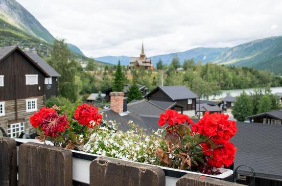 An der Kreuzung zweier wichtiger Verkehrsverbindungen gelegen ist der malerische Ort Lom das touristische Zentrum der Region. Die Stabkirche stammt aus dem 12.Jh. Sehenswert sind hier der Renaissance-Altar und die Barockkanzel. Informativ ist außerdem ein Besuch des Norwegischen Gebirgsmuseums.