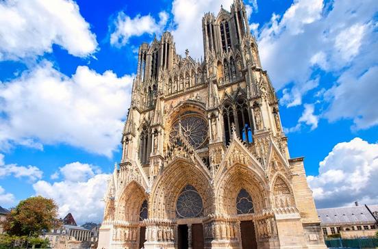 Notre-Dame ist die wichtigste Sehenswürdigkeit im Zentrum der ehemaligen Krönungsstadt und eine der größten Kathedralen der Welt. Sie gehört zum Kulturerbe der Menschheit und ist einzigartig in ihrer reichen Ausstattung an Steinarbeiten, Skulpturen und Glasfenstern. Beachten Sie besonders die Reliefs an der Westfassade. 1211 wurde der erste Stein gelegt, 1285 war der Bau fertig. 26 französische Könige wurden hier gekrönt. Den schönsten Blick auf das imposante Gotteshaus haben Sie vom Cours Anatole-France.