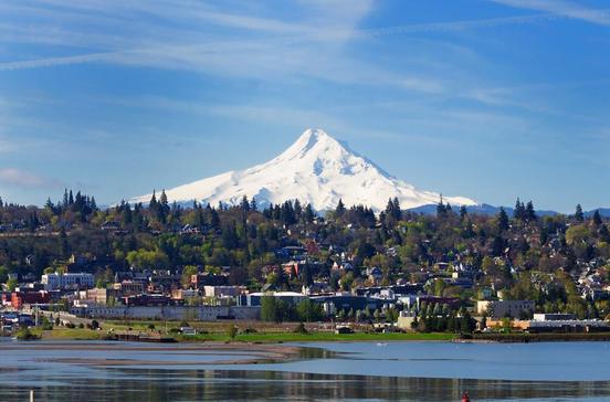 Dank einer vorbildlichen Stadtplanung gilt die Metropole Oregons mit ihren vielen Grünflächen als höchst lebenswerte Stadt. Portland liegt vor der imposanten Kulisse des 3426 m hohen Mount Hood an der Mündung des Willamette River in den Columbia River. Ihren Beinamen "Stadt der Rosen" verdankt sie v.a. den herrlichen Gärten im Washington Park und dem Rose Festival, der großen Blumenparade, die Anfang Juni stattfindet.
