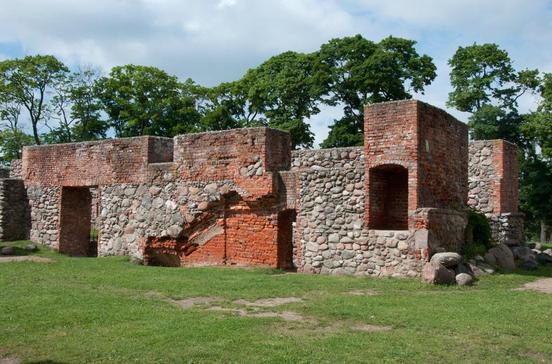 Die Ruine der gotischen Festung aus dem 14.Jh. steht auf der Landbrücke zwischen den Seen, nahe dem zentralen Plac Juranda. Im Rahmen des Stadtfestes, meist Anfang Juli, tragen Hobbyritter dort in historischer Kulisse ihre Schwertkämpfe aus, ein sehenswertes Spektakel. Neben der Burgruine bewahrt das Muzeum Mazurskie eine reiche volkskundliche Sammlung an historischen Haushaltsgegenständen und Kunsthandwerk.