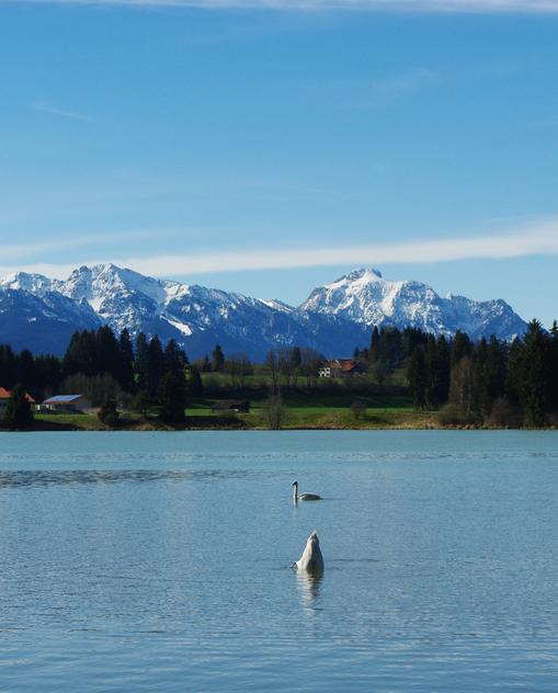 Zu Füßen der Schlösser Neuschwanstein und Hohenschwangau breitet sich eine Hügellandschaft mit vielen Seen und Sehenswürdigkeiten aus. Das Ostallgäu versteht sich daher als „Schlosspark im Allgäu“.