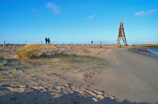 Der zweigeschossige, hölzerne Anleger an der Ausfahrt des Alten Hafens dient nur noch als Aussichtsplattform. Hier kannst du den Ansagen über Herkunft, Ziel und Größe der dicht vorüberfahrenden Schiffe lauschen. Ein 10 km langer Strandwanderweg führt von hier vorbei an der Kugelbake und den Ortsteilen Döse und Duhnen bis nach Sahlenburg.