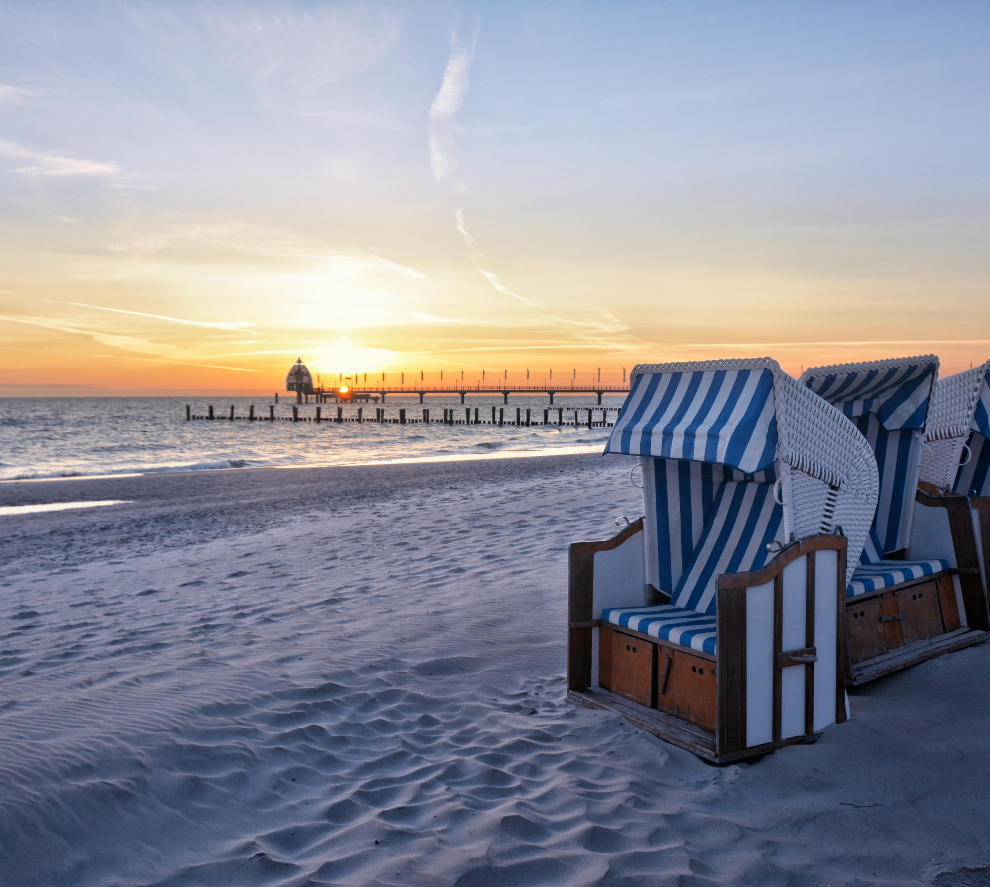 Wiesen, Wald und Wasser, liebenswerte Hotels, gemütliche Restaurants, eine Seebrücke sowie ein vielseitiges Kulturangebot bietet Zingst. In dem größten Ort der Halbinselkette, der herrlich zwischen Ostsee und Bodden liegt, stehen mehr als 10.000 Betten für Gäste bereit. Hochsaison herrscht in Zingst nicht nur zur Sommerferienzeit, sondern auch im Herbst, wenn Tausende von Kranichen in der Umgebung zu Gast sind und die Naturliebhaber zur Kranichbeobachtung in Scharen angereist kommen. Die Region bildet die Drehscheibe für den Kranichzug zwischen den Brutgebieten in Skandinavien, den baltischen Staaten sowie Russland und dem Hauptüberwinterungsgebiet Südspanien.