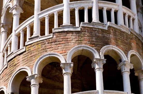 Folgt man vom Campo Manin an dessen Südseite einem kleinen gelben Schild, steht man nach zwei, drei Ecken vor diesem Zeugnis verspielter Renaissancearchitektur. Das „Schneckenhaus“, eine um 1500 entstandene, mit eleganten Arkaden versehene Wendeltreppe, führt an der Fassade des gotischen Palasts der Adelsfamilie Contarini nach oben. Die spektakulärste Wendeltreppe Venedigs ist seit ihrer Restaurierung auch begehbar.