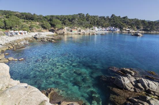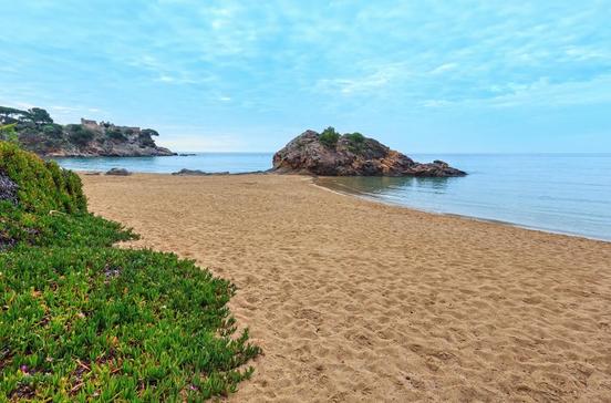 Nördlich von Palamós, 2,5 km von der Hauptstraße entfernt, liegt diese wunderschöne Felsenbucht mit feinem Sand und kristallklarem Wasser.