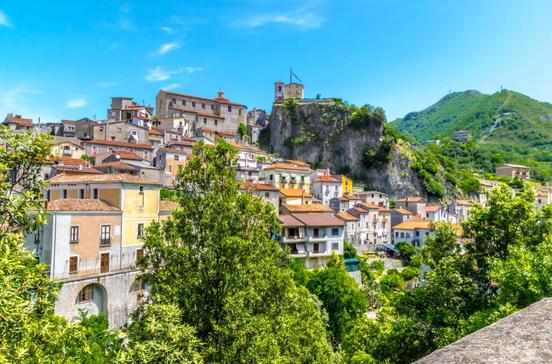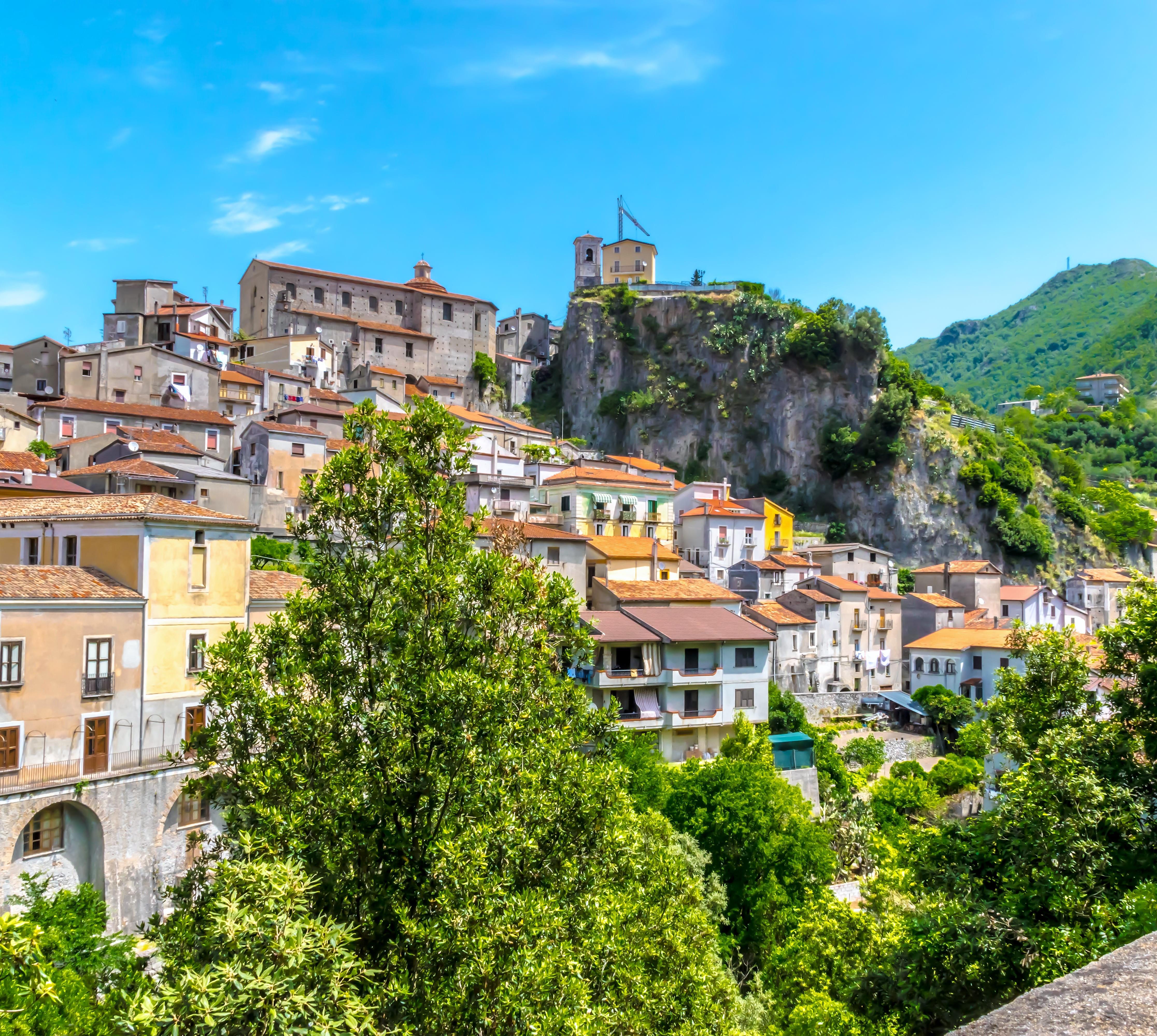 Ein Abt (griech. papas) Isidoros gründete im frühen Mittelalter diese Mönchssiedlung knapp 20 km im Landesinneren über dem Laotal. Ein klassisches Fotomotiv ist die Brücke, die zur Wallfahrtskirche Santa Maria di Costantinopoli führt. Kunstliebhaber finden in der Kirche Santa Sofia gut erhaltene Fresken aus dem 16.Jh.