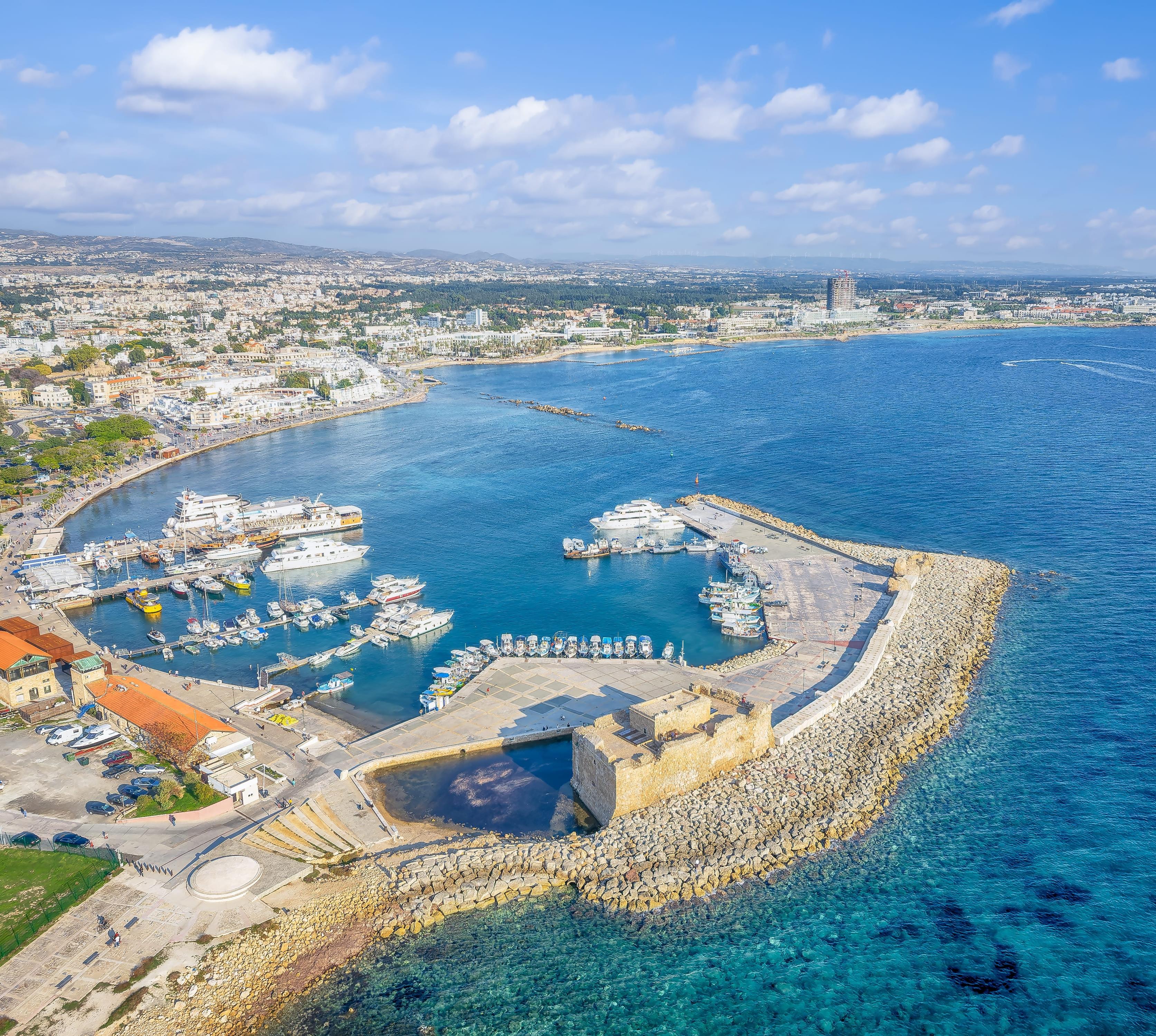 Die Mole des nur noch für Fischer- und Ausflugsboote genutzten Hafens liegt über einer der beiden antiken Molen, von der am Molenende noch einige Steinblöcke zu sehen sind. Am Ansatz der Mole liegt ein türkisches Fort, das zu besichtigen sich wegen des Blicks über Páfos lohnt.