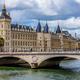 Als "Vorzimmer zur Guillotine" - so wird das ehemalige Gefängnis makabererweise genannt - dokumentiert dieses mächtige Bauwerk auf der Ile de la Cité eine tragische Episode der französischen Geschichte. Die berühmtesten unter den mehr als 2000 Häftlingen, die hier ihrer Hinrichtung entgegensahen, waren die Königin Marie Antoinette (ihre Zelle wurde wieder hergerichtet) sowie die Revolutionäre Georges Danton und Maximilien de Robespierre. Ursprünglich war der mit seinen Rundtürmen malerisch wirkende Bau ein Palast der Herrscherdynastie der Kapetinger aus dem 10.Jh. Der Salle des Gens d'Armes gilt als eines der eindrucksvollsten Beispiele gotischer Profanarchitektur. Der Name leitet sich übrigens von concierge für Haushofmeister her, der ab etwa 1300 vom König mit großer Macht ausgestattet wurde.