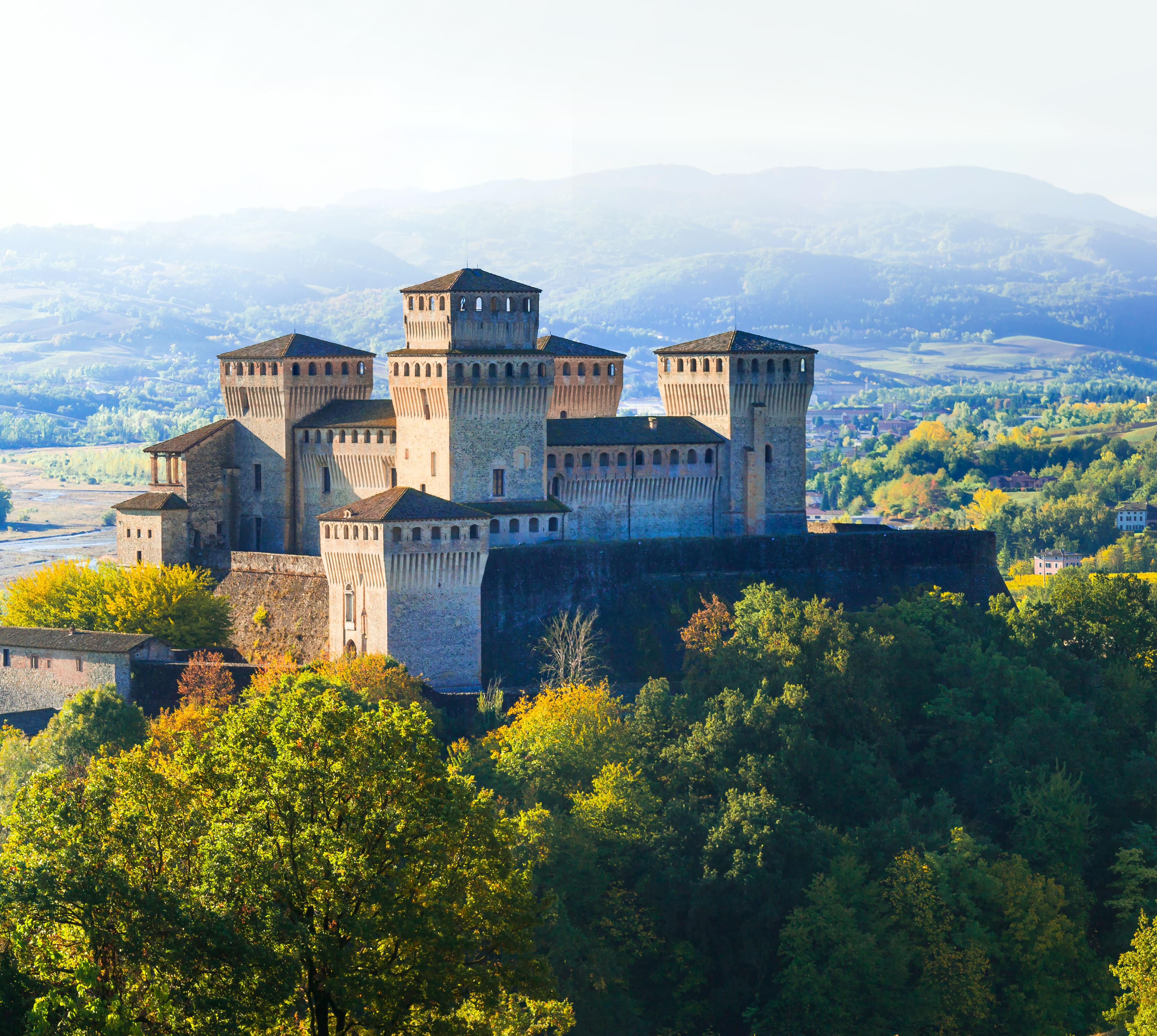 Die Via Emilia bildet auch das Scharnier zwischen zwei Landschaftsbildern: Linker Hand zum Po hin erstreckt sich die fruchtbare Ebene – die Uferlandschaft mit ihren Radrouten auf Deichsträßchen, mit Parks und Picknickplätzen ist hier besonders gepflegt. Und rechter Hand erheben sich im Süden die Hügel und Berge des Apennins mit ihren Rebzeilen, Wäldern und Wiesen. Beliebte Ausflugsziele sind die malerischen, zum Großteil gut erhaltenen Burgen der einstigen Territorialherren, die die Flusstäler bewachten.