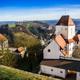 WandernDer Aufstieg zur Wallfahrtskirche Mariahilf erfolgt über die knapp 400 Jahre alte Wallfahrtsstiege: eine überdachte Treppe, ein kleiner Platz zur Andacht, an dem Kerzen flackern, die Wände über und über behängt mit Dingen, die frühere Wallfahrer hier hinterlassen haben.