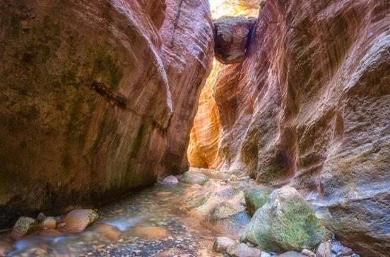 Und alle so: Wow! Diesen Anblick hast du nicht alle Tage. Die Wanderung durch die nur 4 m breite Schlucht auf der Akámas-Halbinsel zwischen den steilen bis zu 30 m hoch aufragenden Wänden ist eins der größten Abenteuer in Zypern. Immer durchs Flussbett des Avgas, über Kiesel und Felsbrocken. Die Sonne reicht kaum bis auf den Grund, daher ist es hier auch im Sommer schattig und grün. Der Weg ist ca. 1,2 km lang. Auf dem Rückweg kannst du um die Schlucht herum laufen, das sind allerdings 10 km extra.