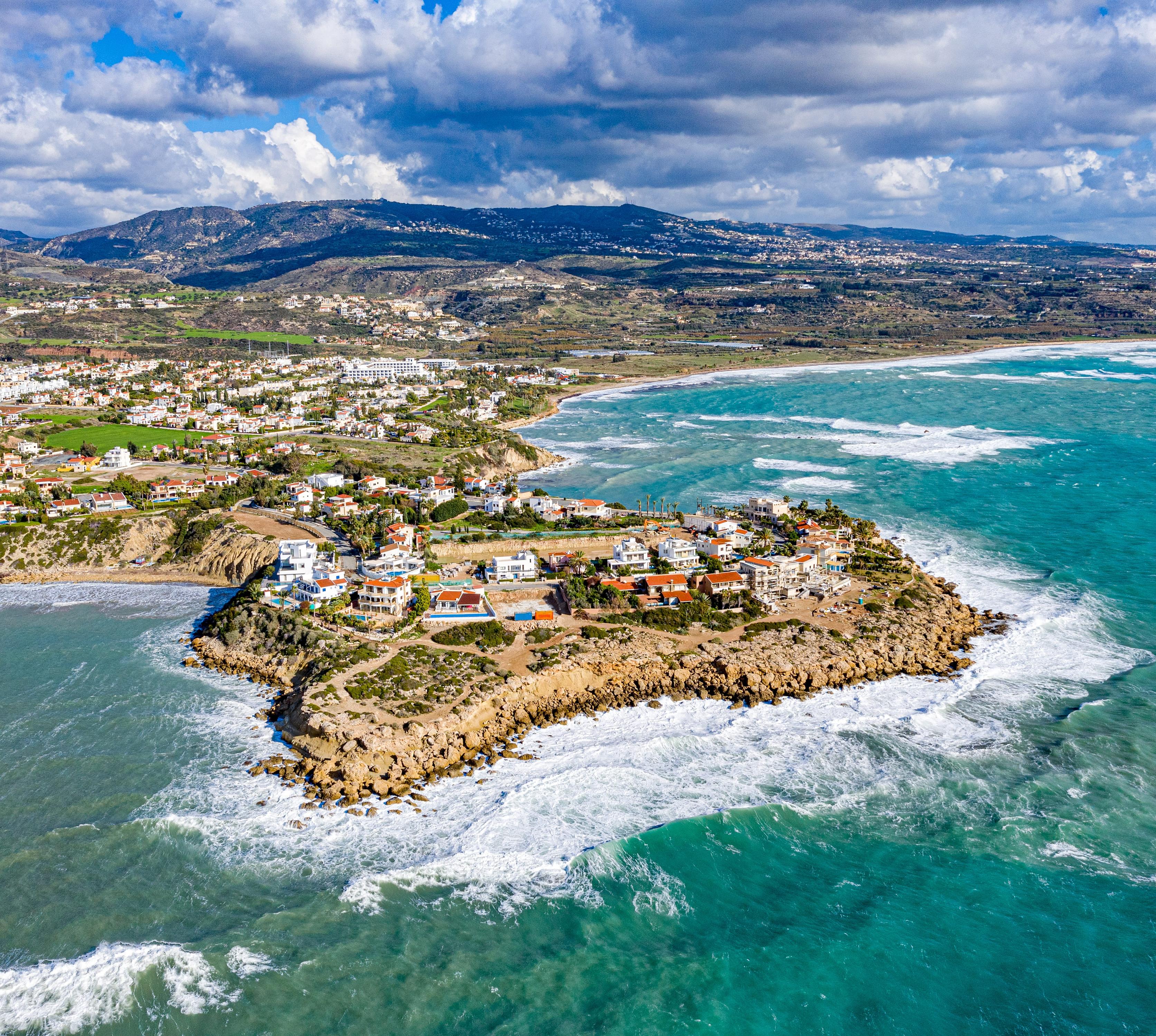 Auf einer Halbinsel zwischen zwei völlig verbauten und stets gut besuchten Sandstrandbuchten oberhalb von Páfos entdeckten Archäologen Spuren einer spätbronzezeitlichen Siedlung. Die 3200 Jahre alte Stadtmauer ist am besten zu erkennen.
