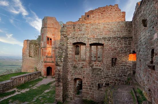 Die Burg, die Sie heute besuchen, ist Ergebnis wechselnder Phasen von Ausbau, Verfall, Wiederaufbau durch fast 1000 Jahre – von den Anfängen im 11.Jahrhundert bis in die jüngste Vergangenheit. Vom Plateau des Bergfrieds haben Sie eine einmalige Aussicht auf den Pfälzerwald.