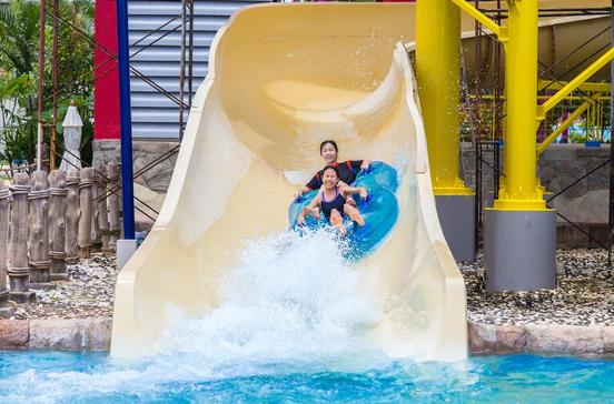 Der riesige Wasserpark am Mai Khao Beach auf Phuket hat alles zu bieten, was Kinder mögen. Es gibt jede Menge Wasserrutschen von langsam bis schnell.
