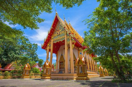 Der elegante Wat Phra Nang Sang (nach der Einmündung der 4030 rechts in Richtung Phuket Town, ca. 6 km von Bang Tao Beach) ist der älteste der Insel, vor etwa 250 Jahren errichtet, als Thalang noch Inselhauptstadt war. Farbenprächtige Wandmalereien stellen die Geschichte Phukets und den Fall von Ayutthaya dar.