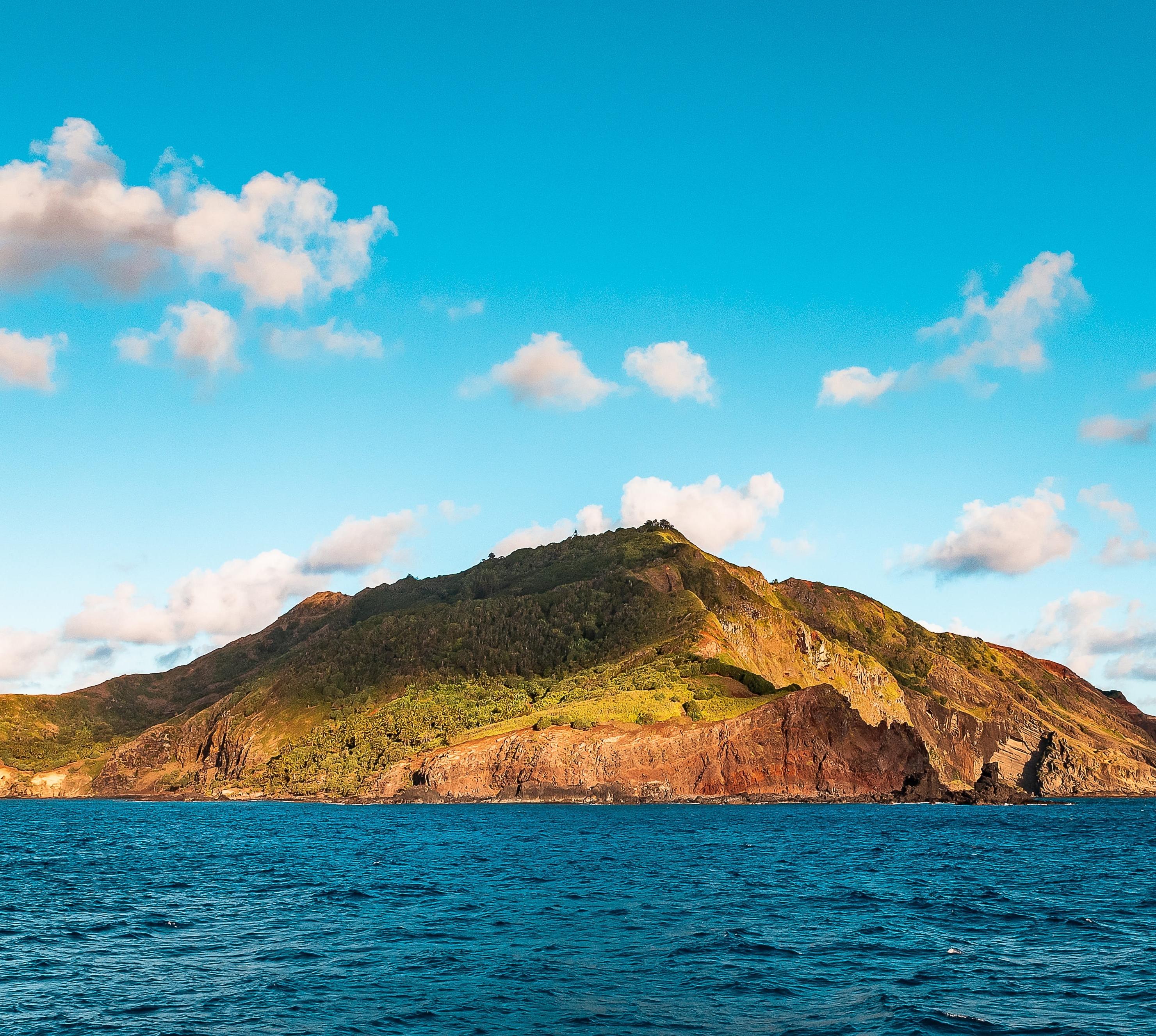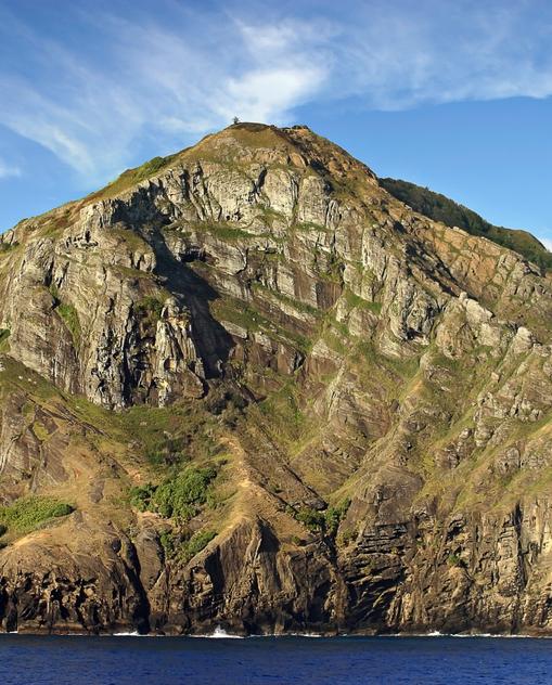 Die Insel selbst ist nur 4,5 km2 klein,und damit nur gut doppelt so groß wie Helgoland, bildet aber mit einigen unbewohnten Atollen eine Landfläche von insgesamt 36 km2.Vielleicht wäre auch die Hauptinsel, die aus einem erloschenen Vulkan entstanden ist, heute noch unbesiedelt, hätten sich nicht gegen Ende des 18.Jhs. die Meuterer der „Bounty“ auf die Suche nach einem Versteck gemacht. Schwer erreichbar ist Pitcairn heute noch. Es gibt keinen Flugplatz, keine Fährverbindung. Lediglich unregelmäßig abfahrende Kreuzfahrt- und Versorgungsschiffe sowie Privatyachten steuern das im östlichen Pazifik gelegene Eiland an. Immerhin soll Anfang des 3.Jahrtausends eine Flugpiste entstehen. Den etwa 50 Einwohnern sieht man ihre Abstammung von den europäischen Meuterern an. Nicht ungewöhnlich sind blaue Augen in einem bronzefarbenen Gesicht, für das wiederum polynesische Vorfahren gesorgt haben. Und echt englisch klingen noch heute die Familiennamen: Adams, Young, Christian, McCoy. In Adamstown, der einzigen Siedlung auf Pitcairn, sind Besucher willkommen. Die Unterbringung und Verpflegung erfolgt privat.