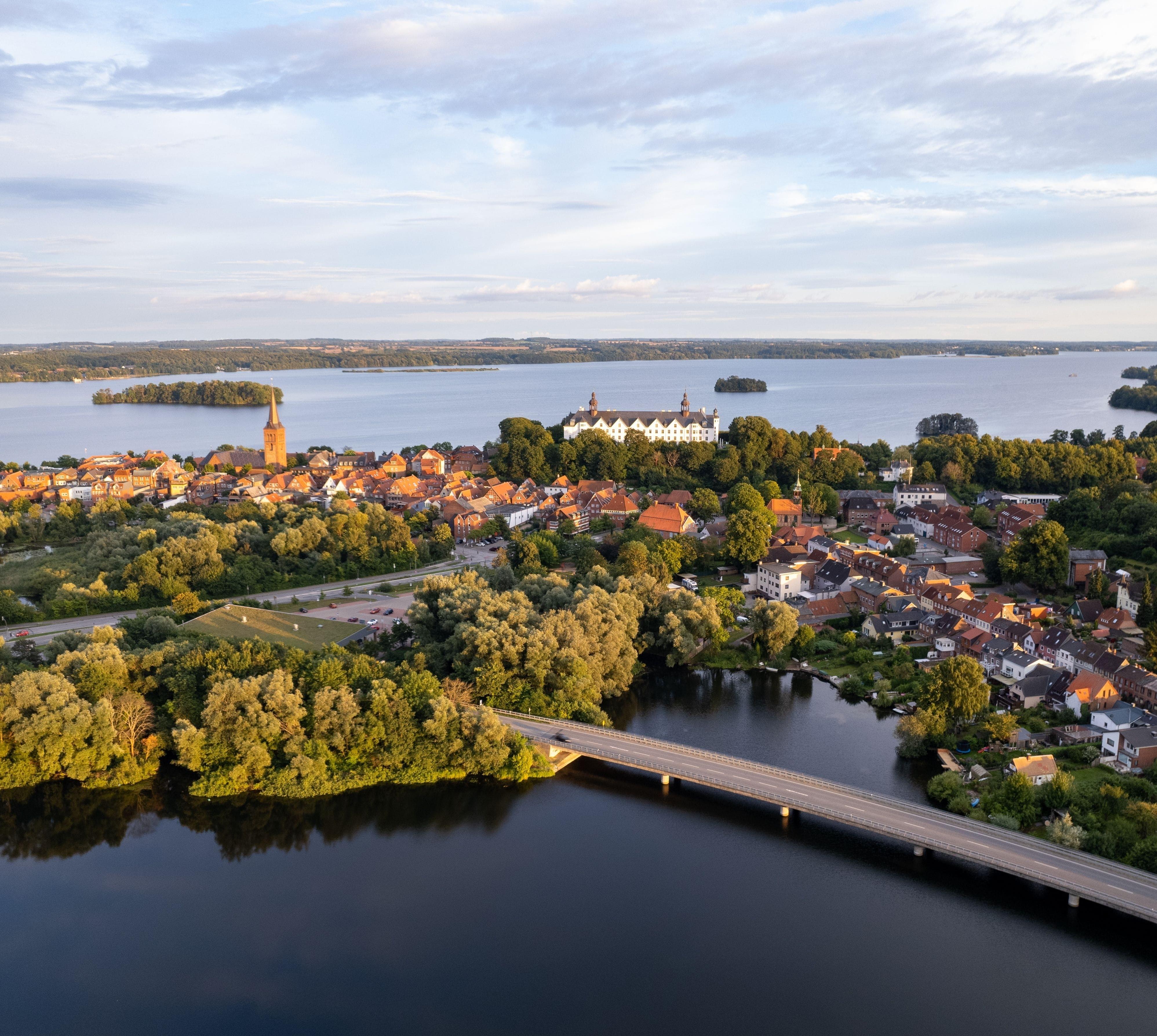 Die Stadt am Plöner See ist ein beliebtes Wassersportzentrum. Ein Stadtbummel führt durch verwinkelte Gassen mit hübschen Fachwerkhäusern. Das im Stil der Spätrenaissance Anfang des 17.Jhs. erbaute Schloss beherbergt heute eine Optiker-Ausbildungsstätte.