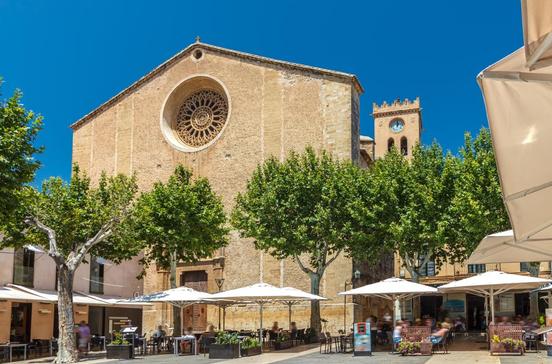 Architektonische HighlightsDie Pfarrkirche Nostra Senyora dels Angels mit großem Rosettenfenster (18.Jh.) beherrscht den Marktplatz in der Fußgängerzone, der von Restaurants gesäumt ist.