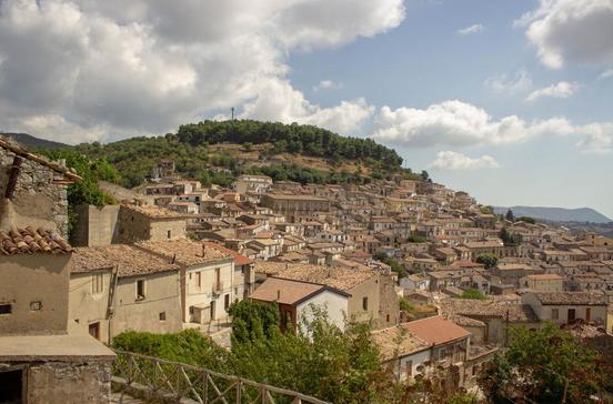 Einer der schönsten Orte Kalabriens zieht sich als verschachtelte Pyramide eine Bergkuppe hinauf. Im Hintergrund bildet das meistens bis ins späte Frühjahr hinein verschneite Kalksteinmassiv des Pollinogebirges eine majestätische Kulisse. Stundenlang kann man ziellos durch das Labyrinth der engen Gassen und steilen Treppenwege streifen. Auf der Spitze des Stadthügels lockt die Ruine des normannische Kastells mit einem atemraubenden Panorama.
