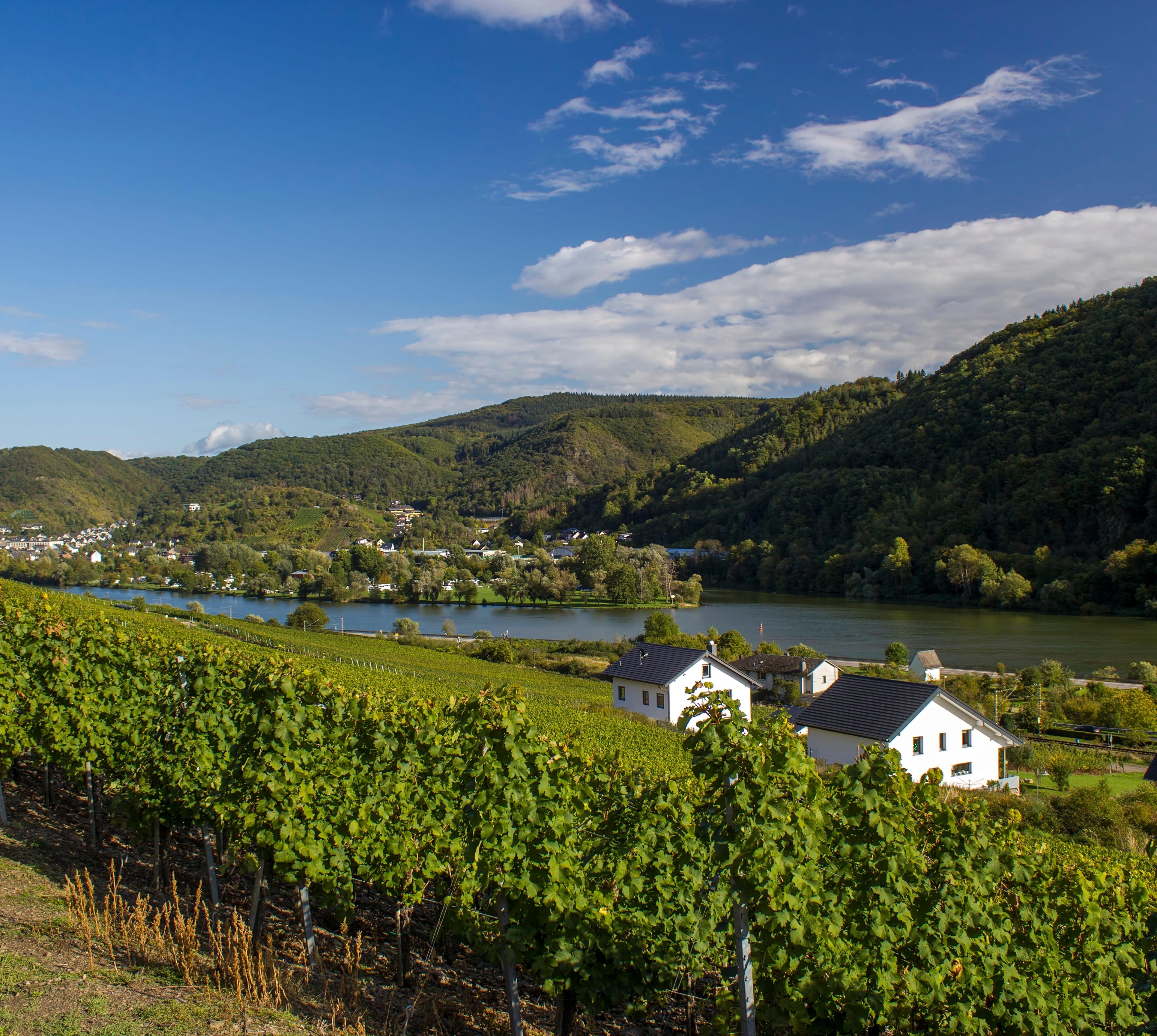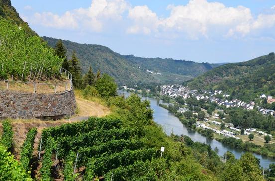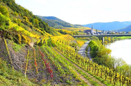 Die Treiser auf der Hunsrückseite haben die Burgen, die Kardener auf der Eifelseite haben die Kirchen – so verkürzt sich die Aufteilung der rund 2000 Ew. auf die Moselufer. Wuchtig erscheint die Stiftskirche St. Castor mit ihren mächtigen Türmen, dem auffallend weißen Gemäuer und der schönen Innenausstattung. Sie verbindet romanischen, gotischen und barocken Stil und ist das Herz eines Stiftsbezirks mit sehenswerten Fachwerkhäusern. Ein Stiftsmuseum zeigt keltische Weihegeschenke, frühchristliche Relikte aus dem Vicus Cardena, wie die Siedlung einst hieß, liturgisches Gerät und mittelalterliche Handschriften. Wer Burgen und Kirchen hinter sich lässt und über die Weinberge von Karden in den Nachbarort Müden wandert, erlebt eine Besonderheit der Region: den größten Buchsbaumbestand nördlich der Alpen! Der Buchsbaumwanderpfad ist 4 km lang. Gehobene Küche genießen – à la carte oder genussvoll kombiniert als vorbestelltes „Weinstubenmenü“ – kannst du im Schlosshotel Petry, das den Charme seiner noblen Vergangenheit bewahrt hat.