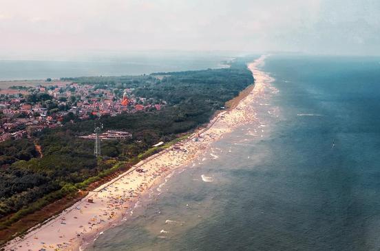 Wie eine Sichel verläuft die Landzunge in sanftem Schwung nach Nordosten, das Frische Haff von der Ostsee trennend: 70 km lang, aber nur zwischen 400 m und 2 km schmal, einem seit 1640 bekannten Fischernest gleich zu Beginn der Nehrung, erzählt eine Filiale des Danziger Meeresmuseums (Muzeum Zalewu Wiślanego) die Geschichte des Frischen Haffs. Auch das einst so abgelegene Katy Rybacki hat sich in den letzten Jahren zu einem munteren Feriendorf gemausert, natürlich vor allem des schönen Nehrungsstrandes wegen. Im Sommer ist er längst nicht so überlaufen wie die Strände der pommerschen Urlauberhochburgen. Touristisches Zentrum der Landzunge ist Krynica Morska (Kahlberg, 1300 Ew.), im Sommer meist ausgebucht. Hier legen auf der Haffseite die Ausflugsschiffe aus Frombork und Elbląg an, vom 26 m hohen Leuchtturm (Latarnia) fliegt der Blick über das Haff bis weit hinein nach Russland.Hinter Krynica Morska wird es mit jedem Kilometer stiller. Viel weiter geht’s ja nun auch nicht mehr, in Piaski ist Schluss. Hier, im östlichsten Winkel der Polnischen Ostseeküste und nah am Niemandsland von EU und Russland, dürfen FKK-Fans am Strand ihre Hüllen fallen lassen, allerdings nur in einem ausgeschilderten Bereich. Und auf russischer Seite? Findet sich Küsteneinsamkeit, soweit das Auge reicht. Der nördliche Teil gehört zur Marinestadt Baltijskt (Pillau) – und ist Sperrgebiet. Wer länger auf der Landnadel bleiben möchte: Zu empfehlen ist das Hotel Kahlberg. Die Touristeninformation vermittelt auch Privatquartiere.