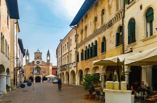 Das rund 50 km westlich gelegene Pordenone (50 000 Ew.) bietet ein schönes historisches Zentrum und vielfältige Einkaufsmöglichkeiten. Als Flusshafen am Noncello im Mittelalter unter den Habsburgern und ab 1508 unter Venedig entstanden, zeigen sich diese Epochen beim Bummel durch die Altstadt Contrada Maggiore längs des Corso Vittorio Emanuele: Neben Arkaden und freskengeschmückten Palazzi aus Mittelalter und Renaissance verdienen das anmutige gotische Rathaus (13.–16.Jh.) und der romanischgotische Dom San Marco mit seinem eleganten Kirchturm Beachtung. Im Inneren des Doms befinden sich kostbare Bilder, darunter die Madonna della Misericordia vom Maler Pordenone (1484–1539), dem berühmtesten Sohn der Stadt. Knapp 10 km nördlich in San Quirino lässt es sich im ausgezeichneten Restaurant La Primula vorzüglich essen und in einem der sechs netten Zimmer auch übernachten. Eine preiswertere Speisealternative aus derselben Küche ist die Osteria Alle Nazioni nebenan.