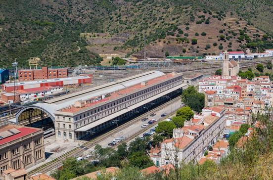 Das imposante Gebäude, eine Eisenkonstruktion mit 14 ausladenden Rundbögen, wurde 1929 von Gustave Eiffel entworfen. Bahnreisende aus Frankreich mussten hier früher warten, da die Achsen der Züge am Grenzbahnhof auf spanische Spurweite umgestellt wurden.
