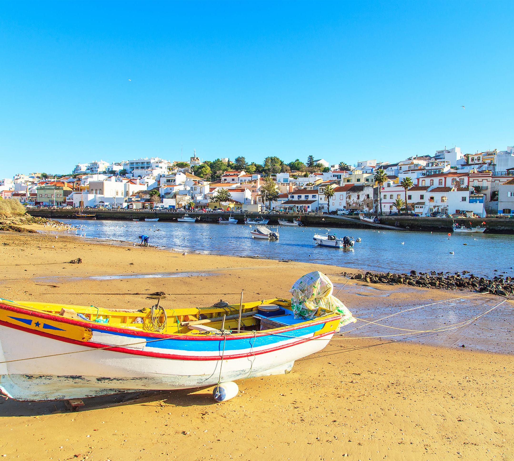 Von Meer und Rio Arade eingerahmt, breitete sich die Stadt in den 1990er-Jahren ungestüm aus. Trotz der vielen gesichtslosen Neubauten hat sie eine ureigene, etwas herbe Atmosphäre beibehalten. Diese entsteht v.a. durch die Fischerkutter, die auf dem Rio Arade an der Innenstadt vorbei zum Flusshafen tuckern. Den vor Wind und Wellen geschützten Ankerbereich - heute zweitgrößter Fischerhafen der Algarve - nutzten schon die Karthager und Römer, später auch die Mauren. Esplanaden, Palmen, ein Yachthafen, ein Anleger für Kreuzfahrtschiffe und Cafés an der neu gestalteten Rio-Uferpromenade, dem Cais Vasco da Gama, schaffen einen Hauch Exotik. Hier und in den Straßen dahinter macht das Bummeln Spaß. Portimão ist das Einkaufszentrum der westlichen Algarve, tut aber auch etwas für die Kultur.